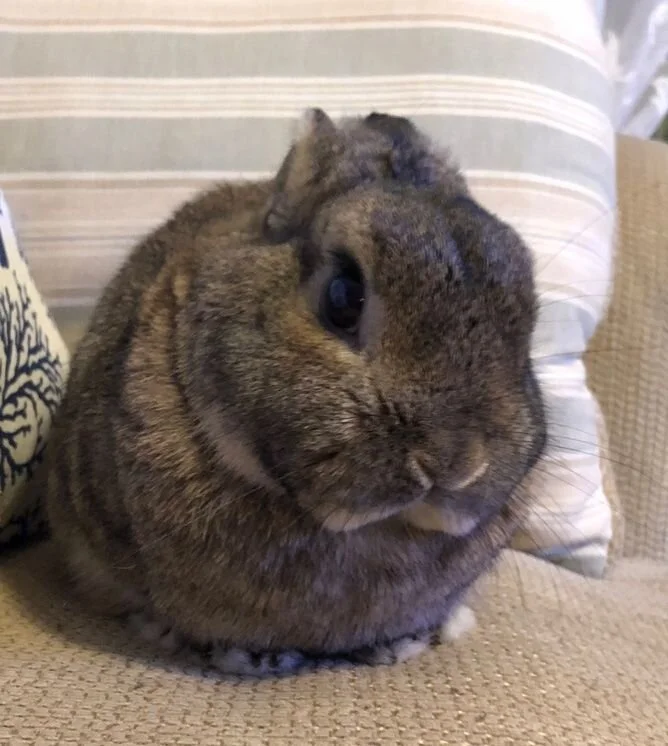 While working from home, I am continually impressed with his ability to meet his needs. He eats when he needs to, runs around for exercise,and takes naps, lounging wherever. When he wants attention, he'll nudge me for some extra love. I am amazed at his instincts to take care of himself and do what he needs to be a happy little Bun!